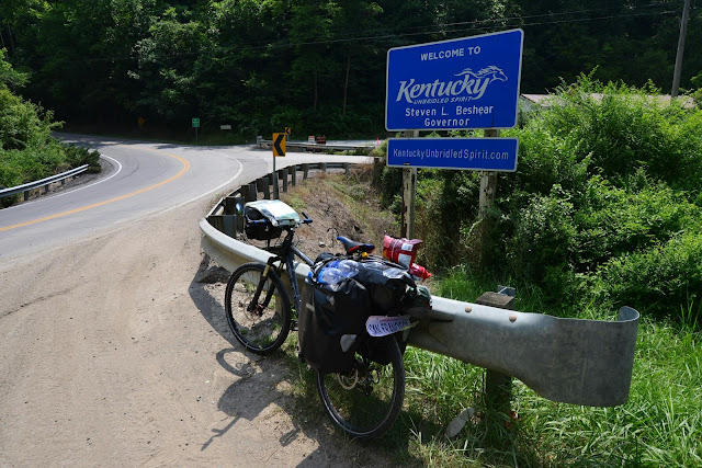 Day 12 was the day I made it to Kentucky. I was a bit culture shocked. It started in south western Virginia and continued in Kentucky: Poverty most people wouldn't expect in the US. I had seen the poor side of this country before, but I didn't expect such a rapid change in that area. It came within a few miles: Trailers everywhere, at least one old rotten car in most of the yards, besides cars the yards were filled with all kinds of trash, tires, etc. There were no "standardized" trash cans, instead they had all typed of containers by the side of the roads to put their trash in: bath tubs, shopping carts, cages... Some had just piled up their trash bags, who knows if they ever get picked up?